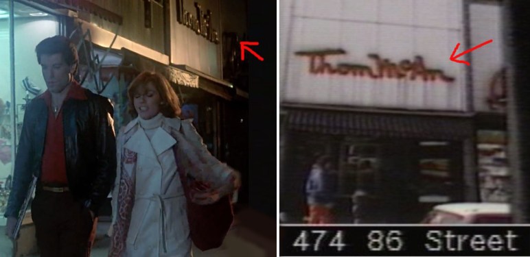 One of those stores was a Thom McAn Shoes, which appeared near the end of the scene. Thanks to the 1980s tax records, I figured out that it used to be located at 474 86th Street, which helped confirm that when Stephanie crosses the street at the end, they were on the southwest corner of 5th Avenue.