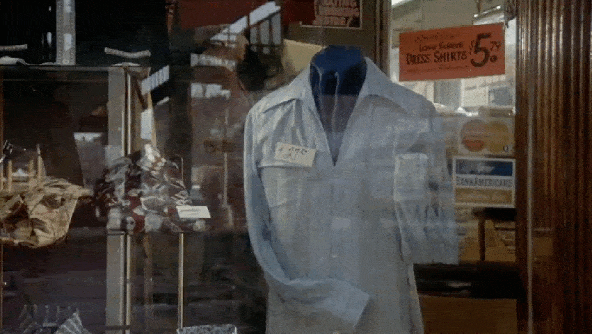 As a side note, if you’re a fan of Martin Scorsese’s After Hours, you might recognize the shirt salesman to be Murray Moston, the same actor who played the token booth operator at the Spring Street Subway Station who refuses to give the main character, Paul, a free token.