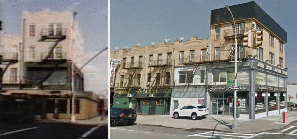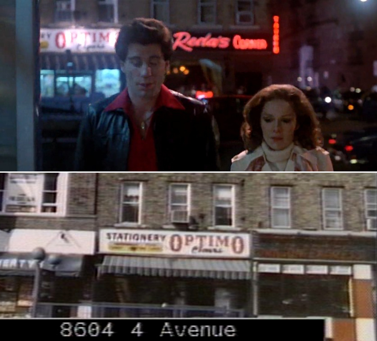 This is one of those locations that wasn’t of high interest with Fever fans, most likely because there’s not very much that happens in the scene other than Tony’s friends picking him up. However, The Movie District website ended up listing the address, which I confirmed was correct by matching up the relatively unchanged building on the corner of 79th Street and 3rd Avenue (featured in the first “before/after” image above).