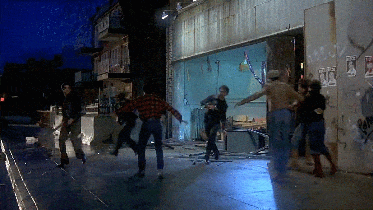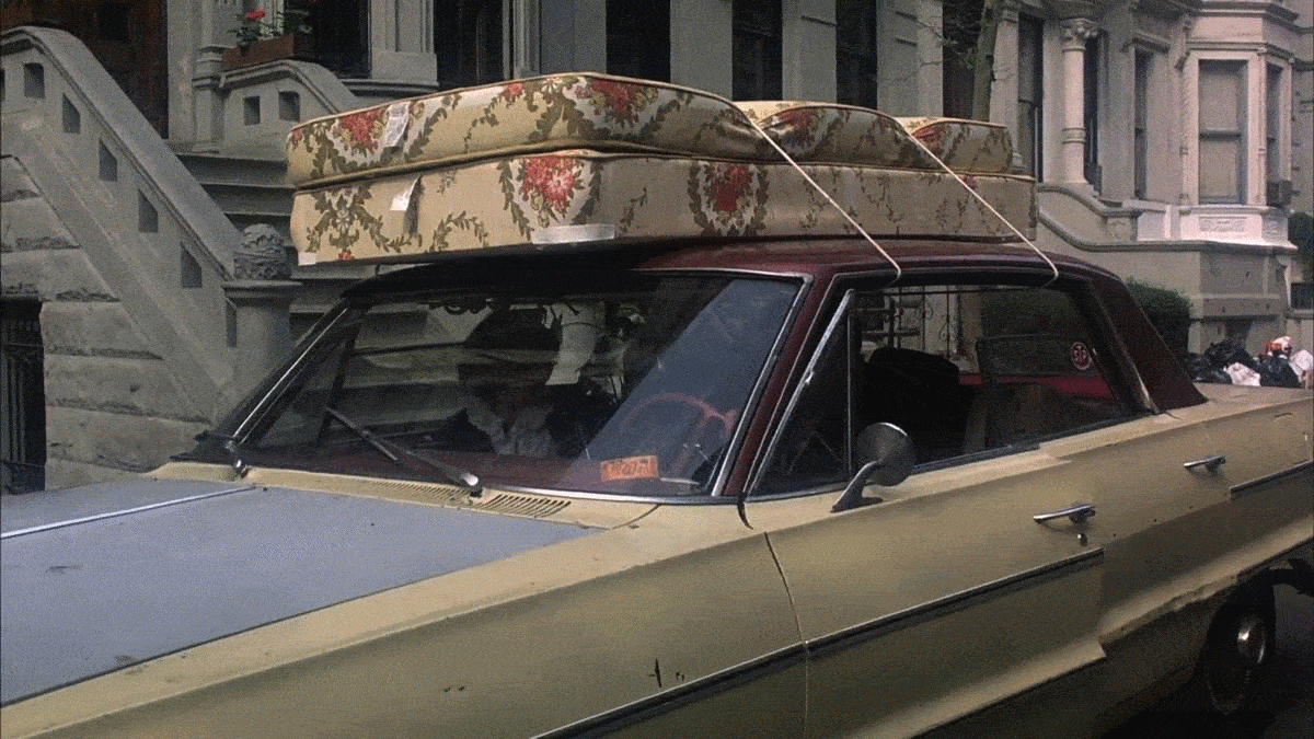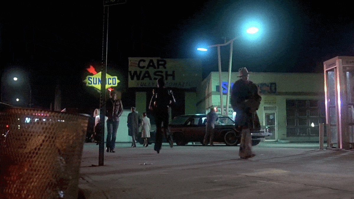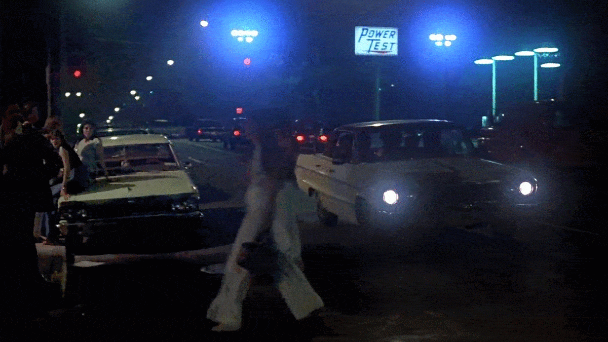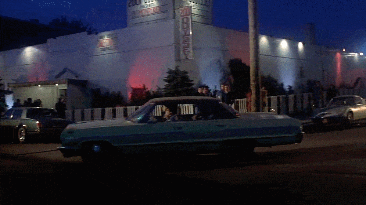 The gang’s car that’s featured in this and several other scenes was a 1964 Chevy Impala hardtop, which was personally picked out by director John Badham. He was subsequently told by a few locals that someone from Bensonhurst would never be caught dead driving a Chevy and would more likely drive an old Cadillac. But production had already spent a good chunk of money on two Impalas and getting them distressed, so they were stuck with they got.