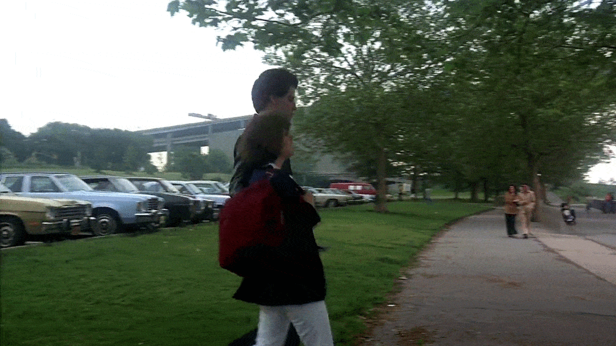 This is yet another scene that had already been identified prior to my research. The only part I had to work on was trying to figure out where exactly the bench they sat on was located. Because the benches seen in the film have since been replaced, I used the trees and the perspective of the bridge to help me figure out where they sat. But since the new bench might not had been installed at the exact same spot as the old one, my “before/after” image might be slightly off.