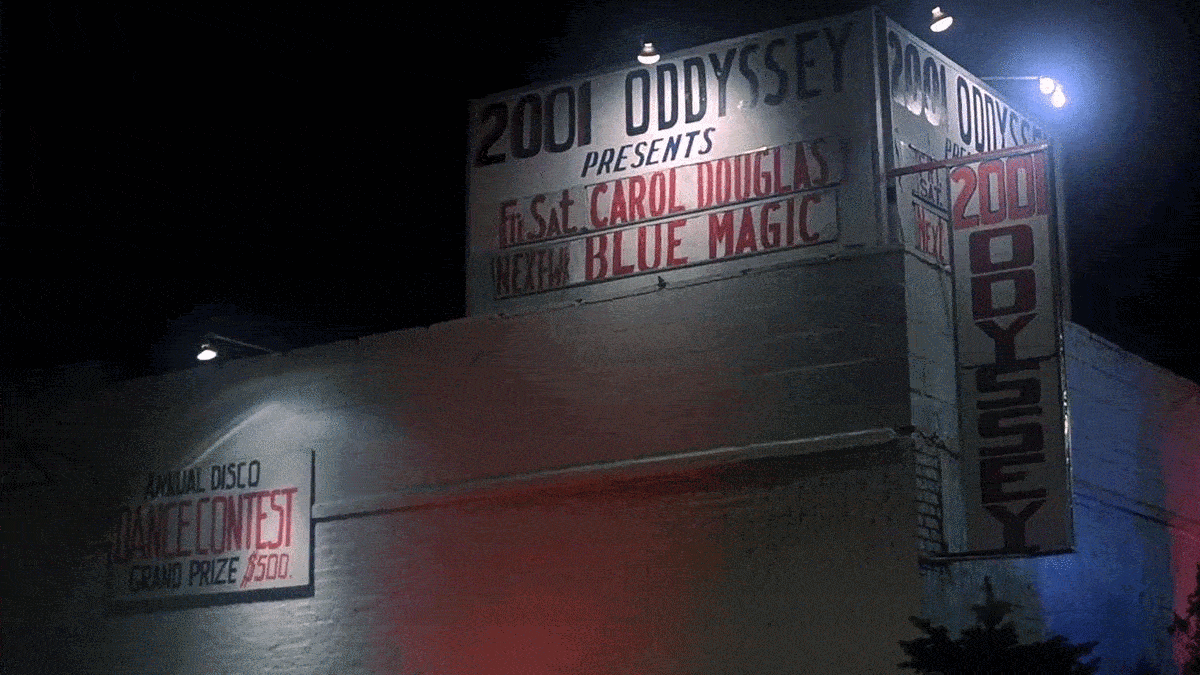 But before becoming a part of cinema history, the 2001 discotheque was a sparse, run-of-the-mill club in a mostly working-class neighborhood. While the clubs in Manhattan were all about money, fame and status, 2001 was more about the basics — getting drunk and getting laid. And when it was decided that Fever would film there, the art department knew they needed to spruce up the space, so they strung christmas lights everywhere and lined the walls with aluminum foil to give it a textured metallic sheen. But the biggest (and most expensive) improvement was the lighted, flashing Plexiglas floor which cost production around $15,000.