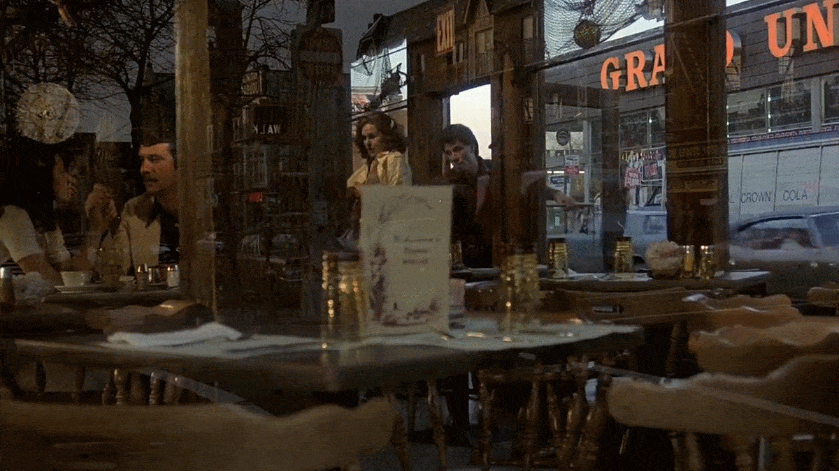 Nicely done. Two comments: (1) The bar on 86th and 4th, next to the Optimo, is Reda’s, not Rena’s; (2) the dining establishment on 4th and 92nd was Fisherman’s Corner, a seafood restaurant, at that time. A diner, especially in NYC, was/is something completely different. I realize that in the scene they order just coffee/tea, but not a diner despite the diner-type order.