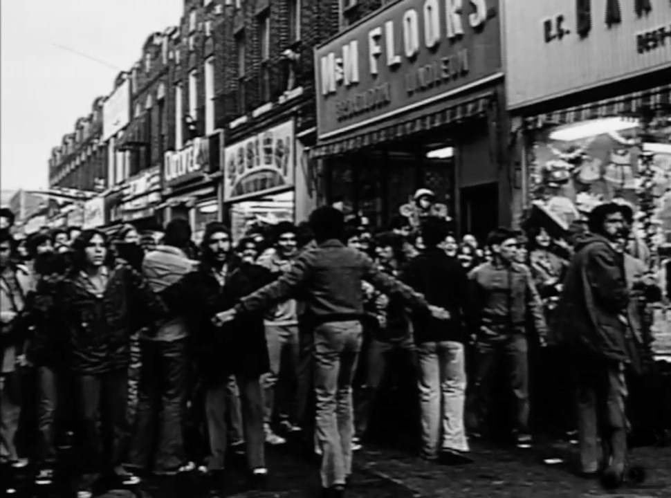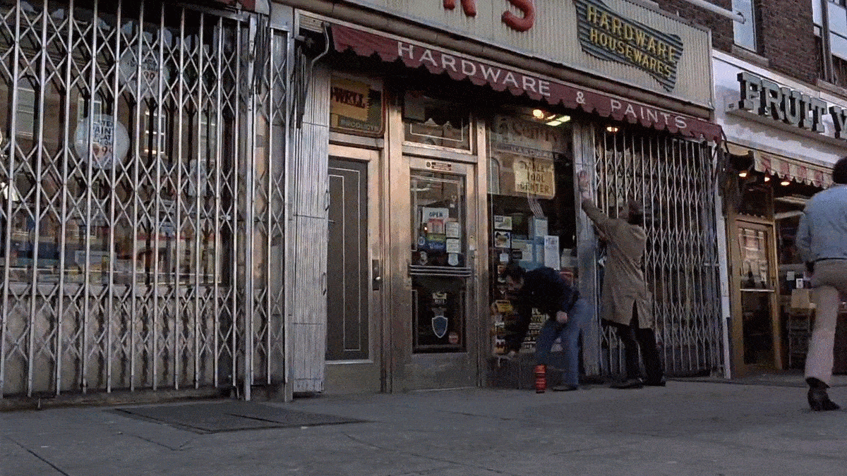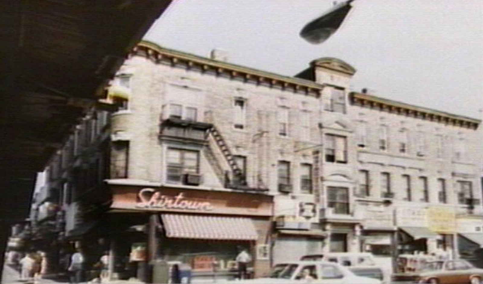 To confirm the exact spot where Tony interacts with the lady, I found a 1980s tax photo of a clothing store at 2025 86th Street called S&J (short for Shirts & Jeans), which matched the film. The most noticeable matching element was a series of distinct red, white and blue panels at the store’s base.