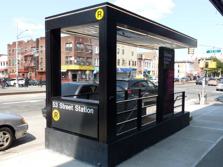Aside from the shape of the columns, not much at the 53rd Street station today looks like it did in 1977, especially after it was upgraded in 2017 as part of the MTA’s $72 million renovation project. You can tell things had been modernized even before you go underground by the looks of the black, futuristic subway entrances along 4th Avenue.