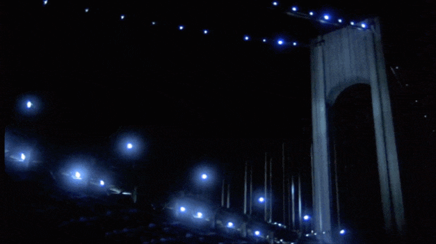 Not much to say about this scene, since it’s obvious it took place on the Verrazzano Bridge (officially known as the Verrazzano-Narrows Bridge, but no one I know calls it that). I’m pretty sure they dance along the eastern tower on the Brooklyn side, but it’s hard to tell for sure.