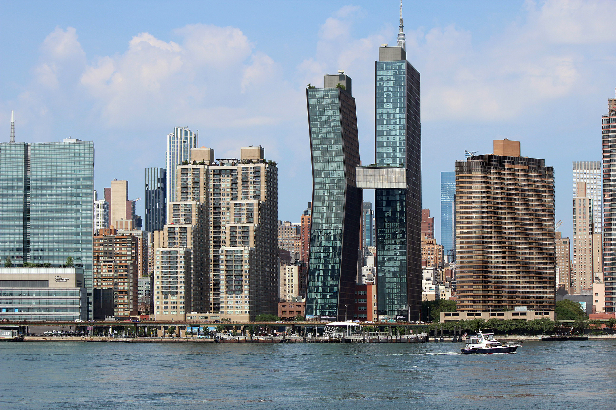 Finally around 2014, a pair of luxury residential skyscrapers, named The Copper, were erected on the property. The two glass- and copper-clad towers, one reaching 41 stories and the other 48 stories with a 3-story skybridge connecting them, are distinct in that they were designed with slants to give the effect that they’re “dancing.” But honestly, to me, it just looks like a silly mistake.