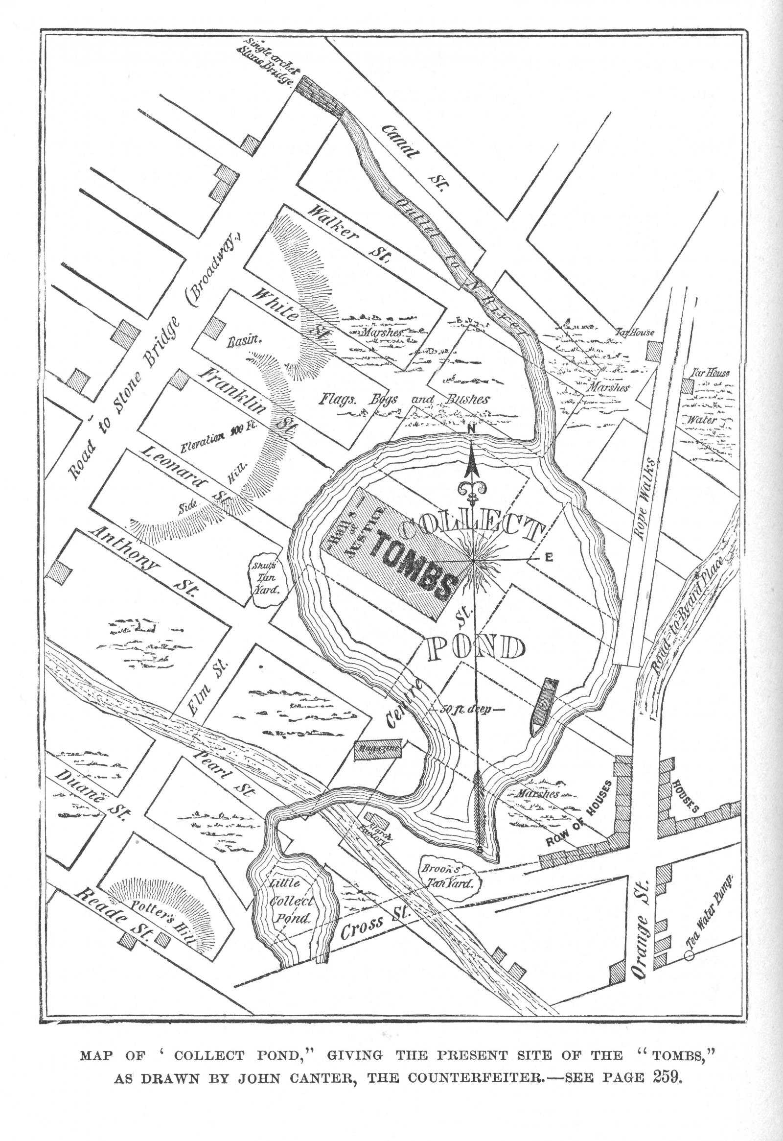 However, long before being home to criminal institutions, this area was the location of New York City’s first main water supply called Collect Pond.