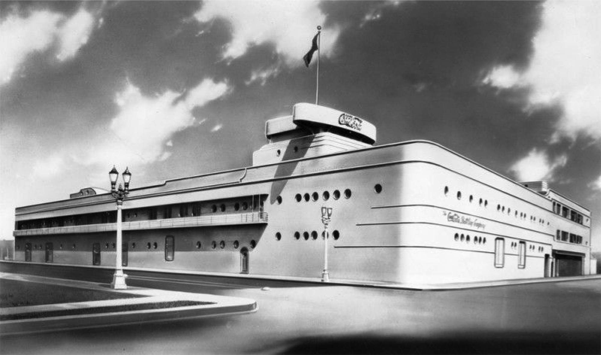 While finding background information on the old steam plant was pretty easy, I had a little difficulty finding anything on its neighbor — that sleek, Art Deco building with the Coke logo on it. In fact, it was that oddly beautiful building that initially made me eager to nail down the location of this otherwise uneventful shot from the movie.