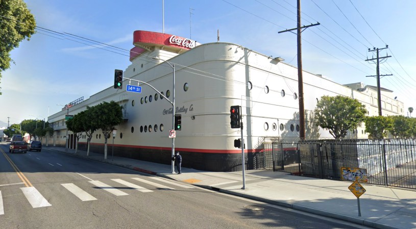For some reason, I initially thought the Coke logo was just a large advertisement, but the notion that it was an associated business should’ve made more sense. However, even after we were armed with the name of the business there, we couldn’t find any vintage photos of the building. Blakeslee did find a photo of a Coca-Cola bottling company in Los Angeles that had a similar design to the one in the film. Amazingly, that building is still around today.