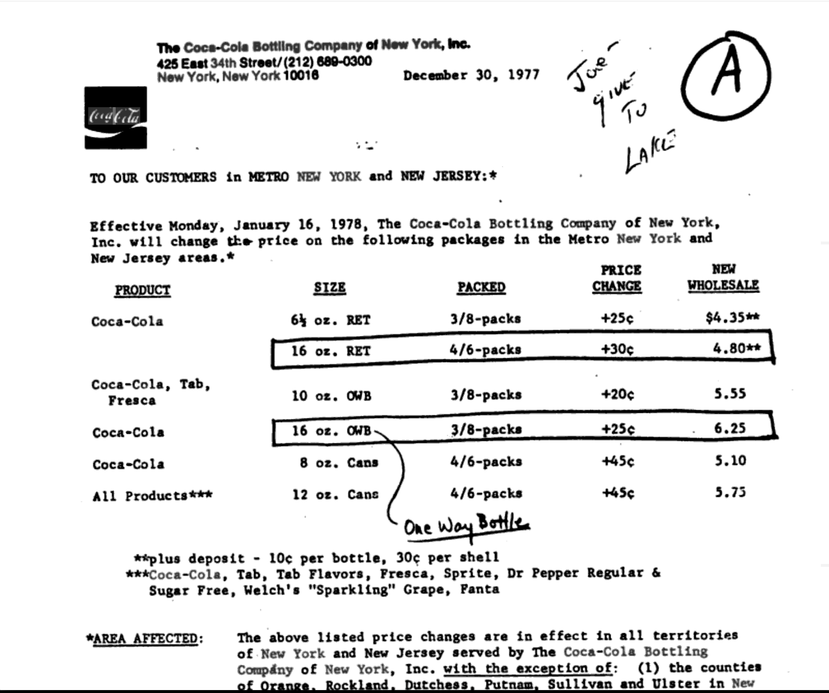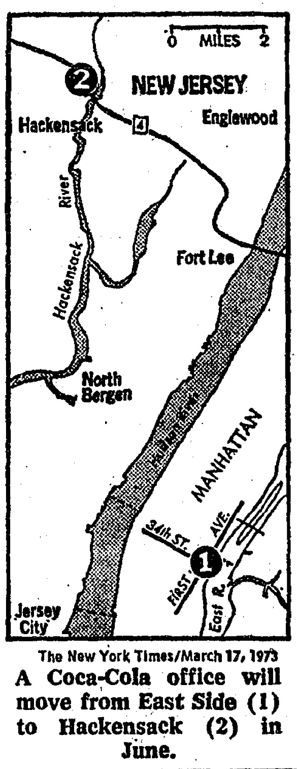 While info on the New York bottling company was scant, it appears that it was an independently-operated franchise that would process the concentrate provided by Coca‐Cola, bottle it and truck to retailers. The New York company, whose executive offices were located at that 34th Street plant since its construction in 1947, was the largest independent bottling entity for the Coca‐Cola label. By the 1970s, they had 33 bottling plants and a sales territory that covered New York, New Jersey and Pennsylvania (not only for Coke, but for other soft drink labels like 7-Up and Dr. Pepper).