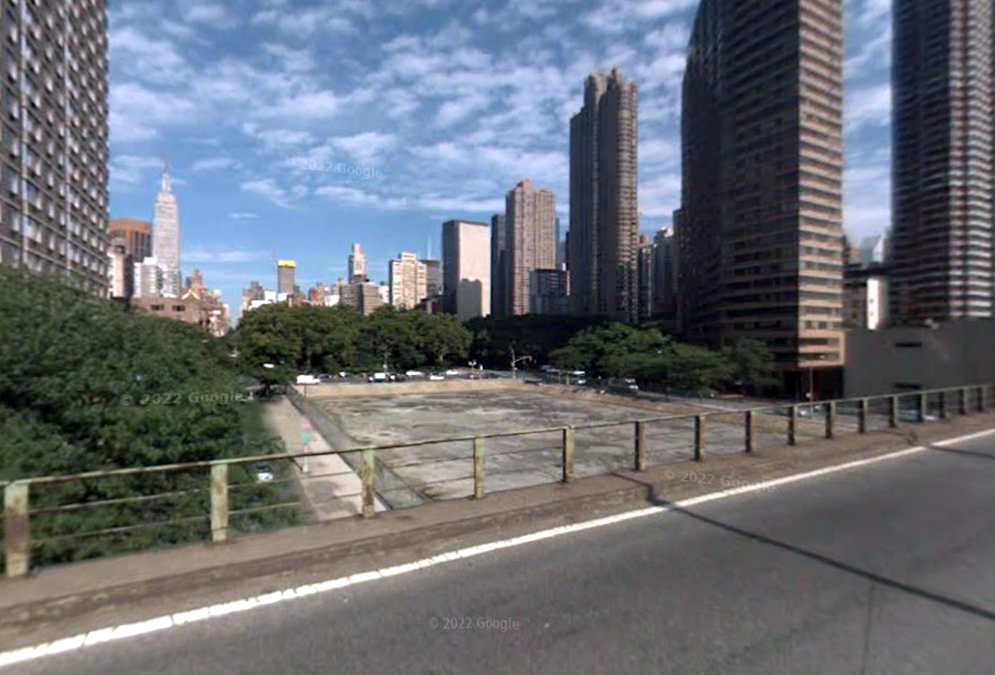 This backside view of Bellevue has since been obstructed by several large skyscrapers, but it was still visible from FDR Drive prior to 2011. So, by using older Google Street Views of the area, I was able to match things up and confirm this filming location.