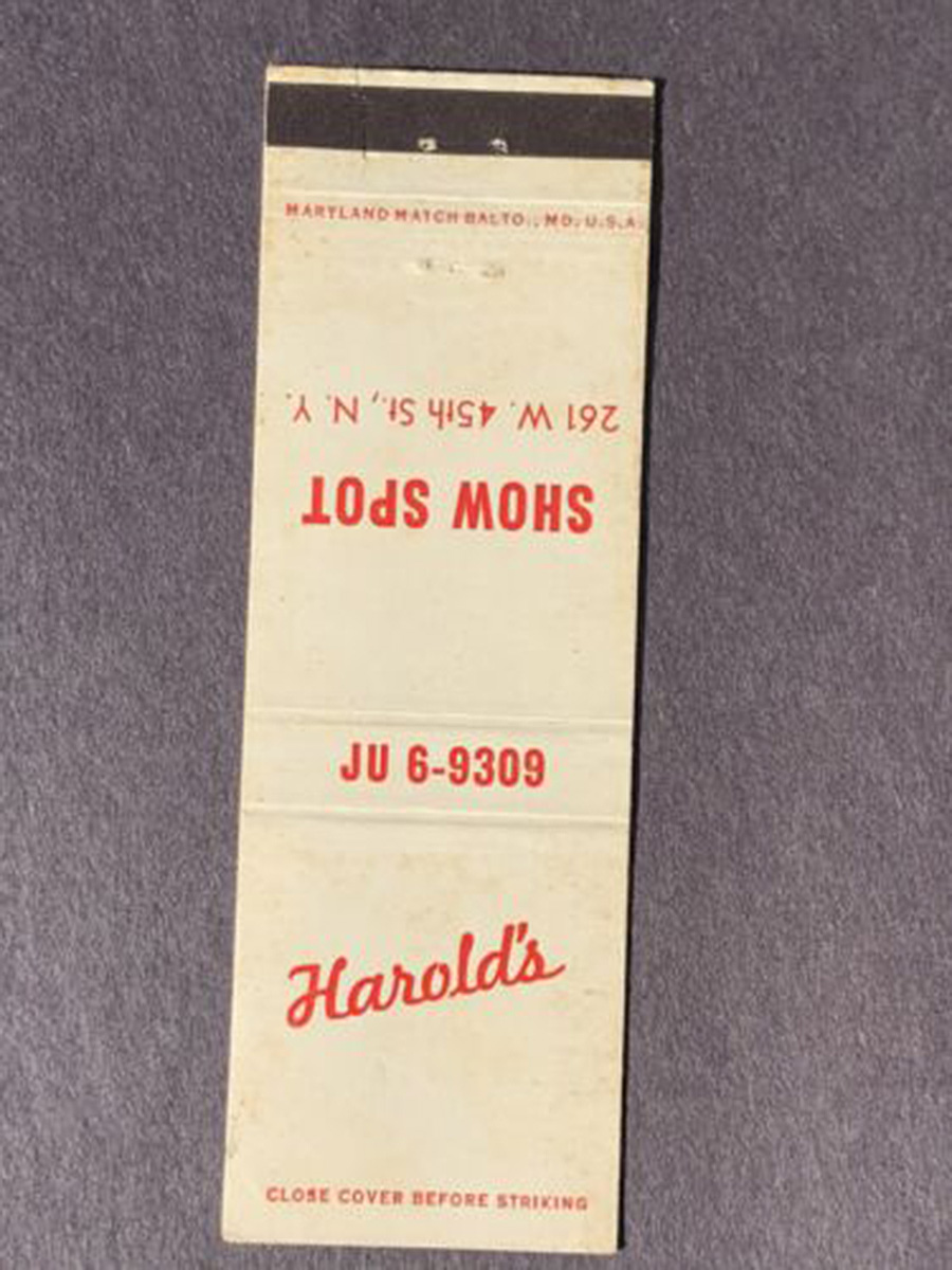 Located at 261 W 45th Street across from the Golden Theatre, Show Spot was operated by Harold Speller, a 200 pound, spectacle-wearing Parisian who was described in a 1958 Times article as “a benevolent host and a forthright bouncer,” known for tossing patrons he disfavored on a daily basis. Being in the heart of the Theater District, the bar was a choice watering hole for numerous New York actors — some Harold adored, like Jack Lemmon and Ben Gazzara, while others, like Paul Newman or Steve McQueen, weren’t treated as kindly.