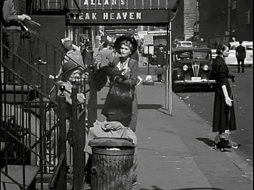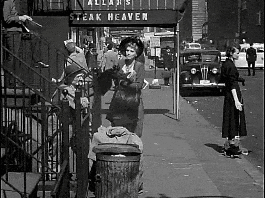 Of course, all the apartment interiors (as well as the subway station that appears in between this and the previous scene) were filmed on a Hollywood soundstage at MGM Studios.