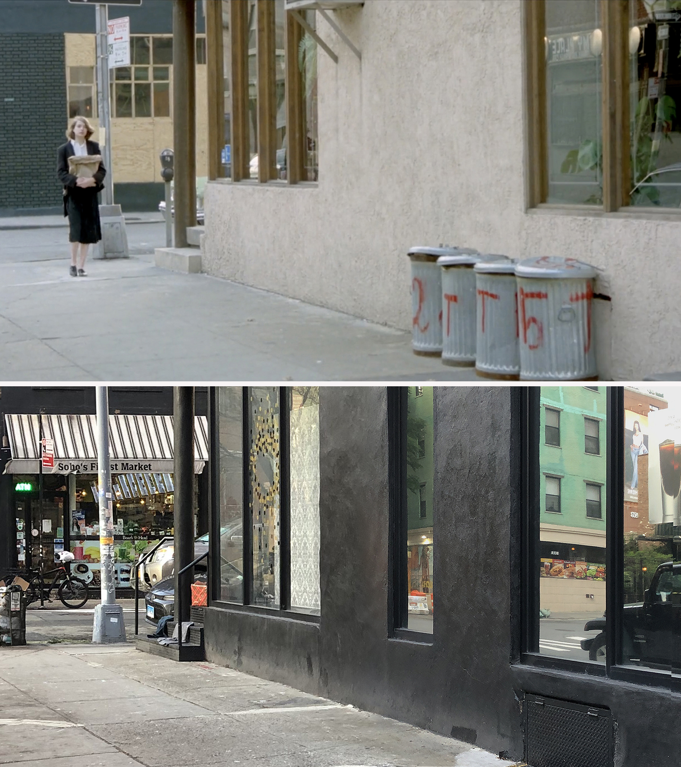 I almost immediately rejected Canal, since the architecture there doesn’t really look like what appeared in this sequence. So instead, I focused my attention on Bowery in the Nolita neighborhood, checking out any street that formed a T. Eventually, I landed on Spring and backtracked a couple blocks to see if I could spot some matching buildings.