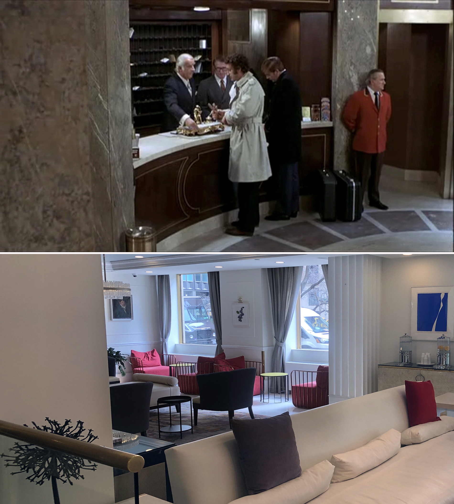 The Doral lasted until around 2004, when it was taken over and renamed 70 Park Avenue. At that point, the hotel received a major retrofit and as you can see in the above images, the lobby now looks very different from what appeared in The French Connection.