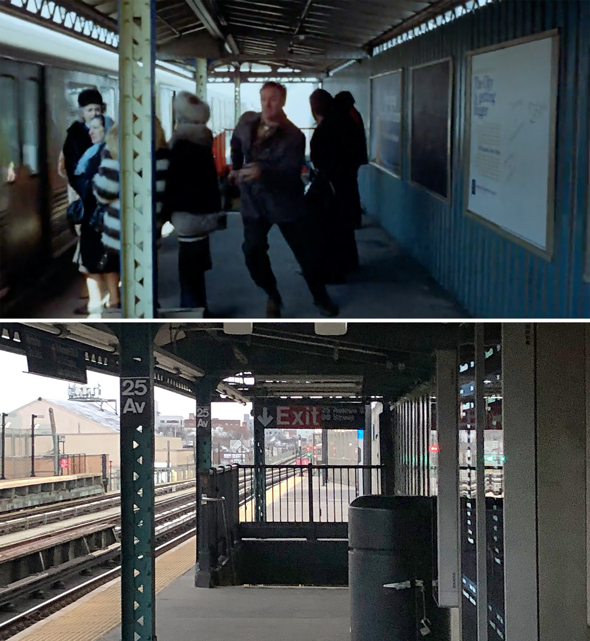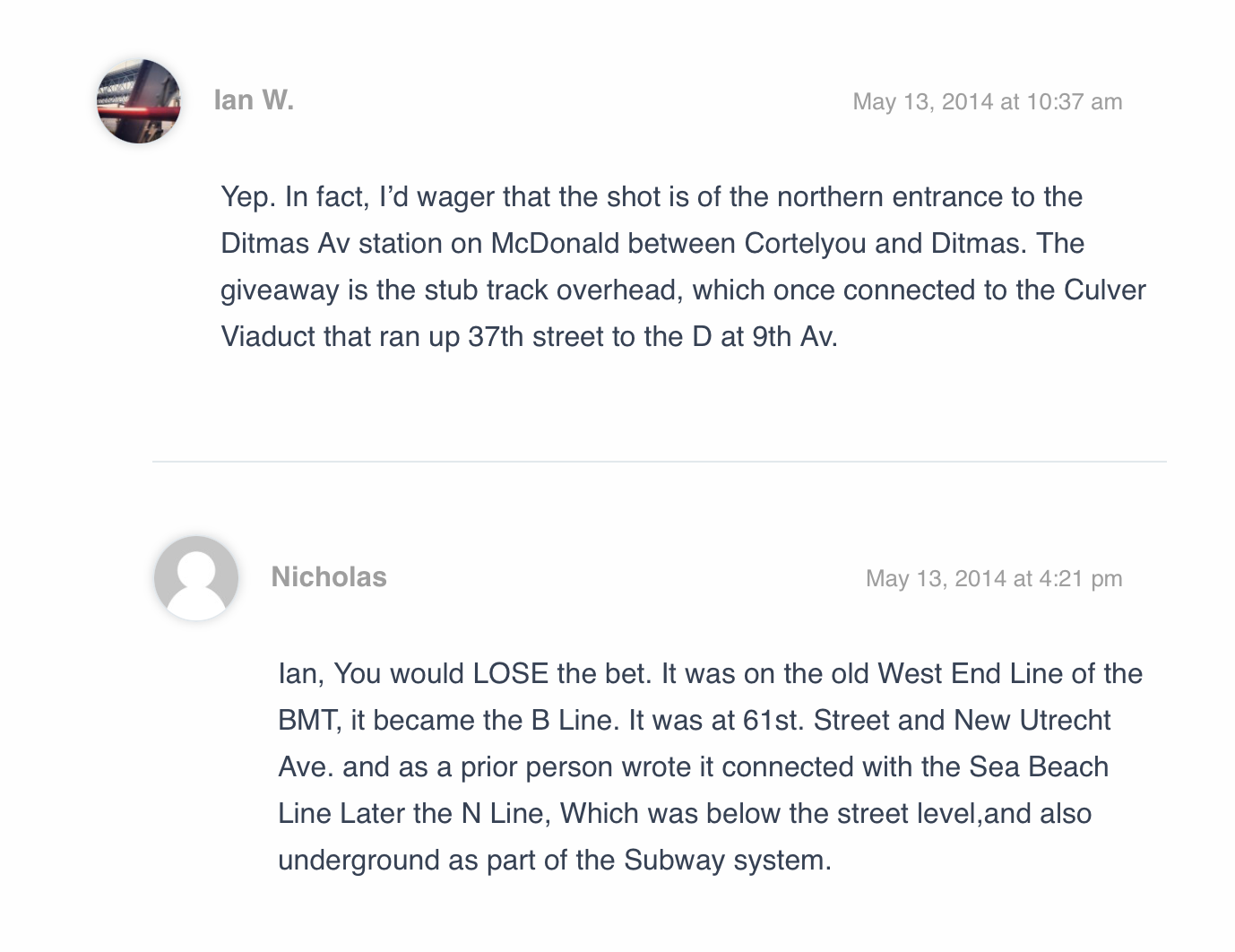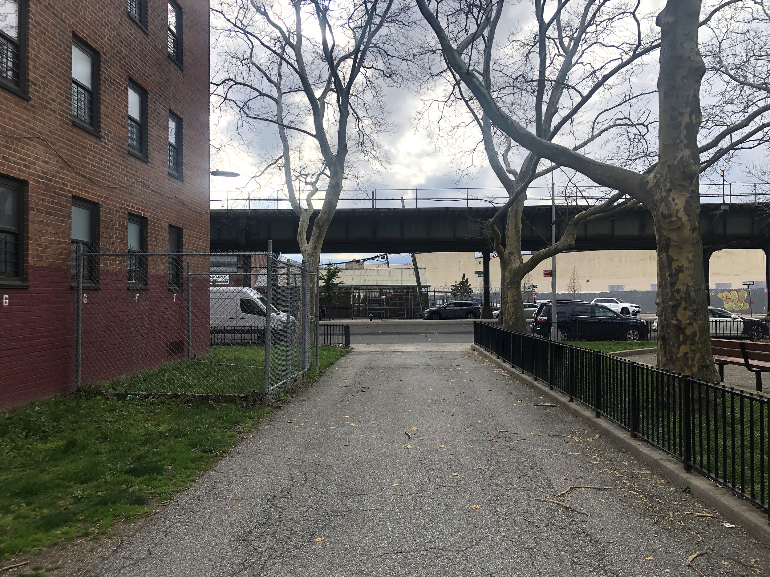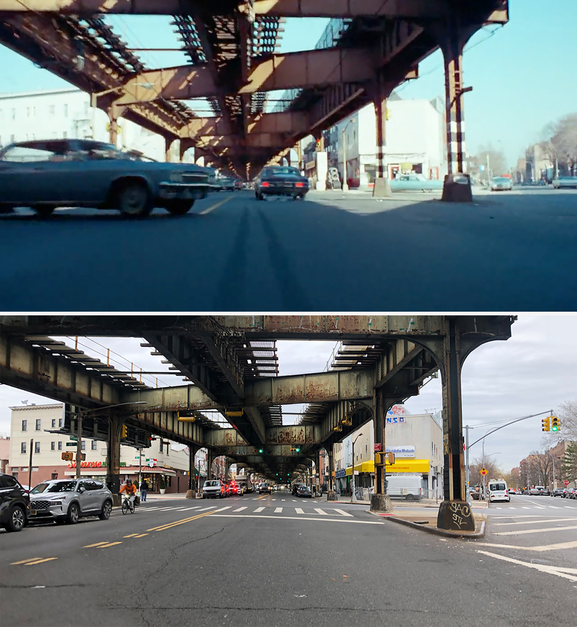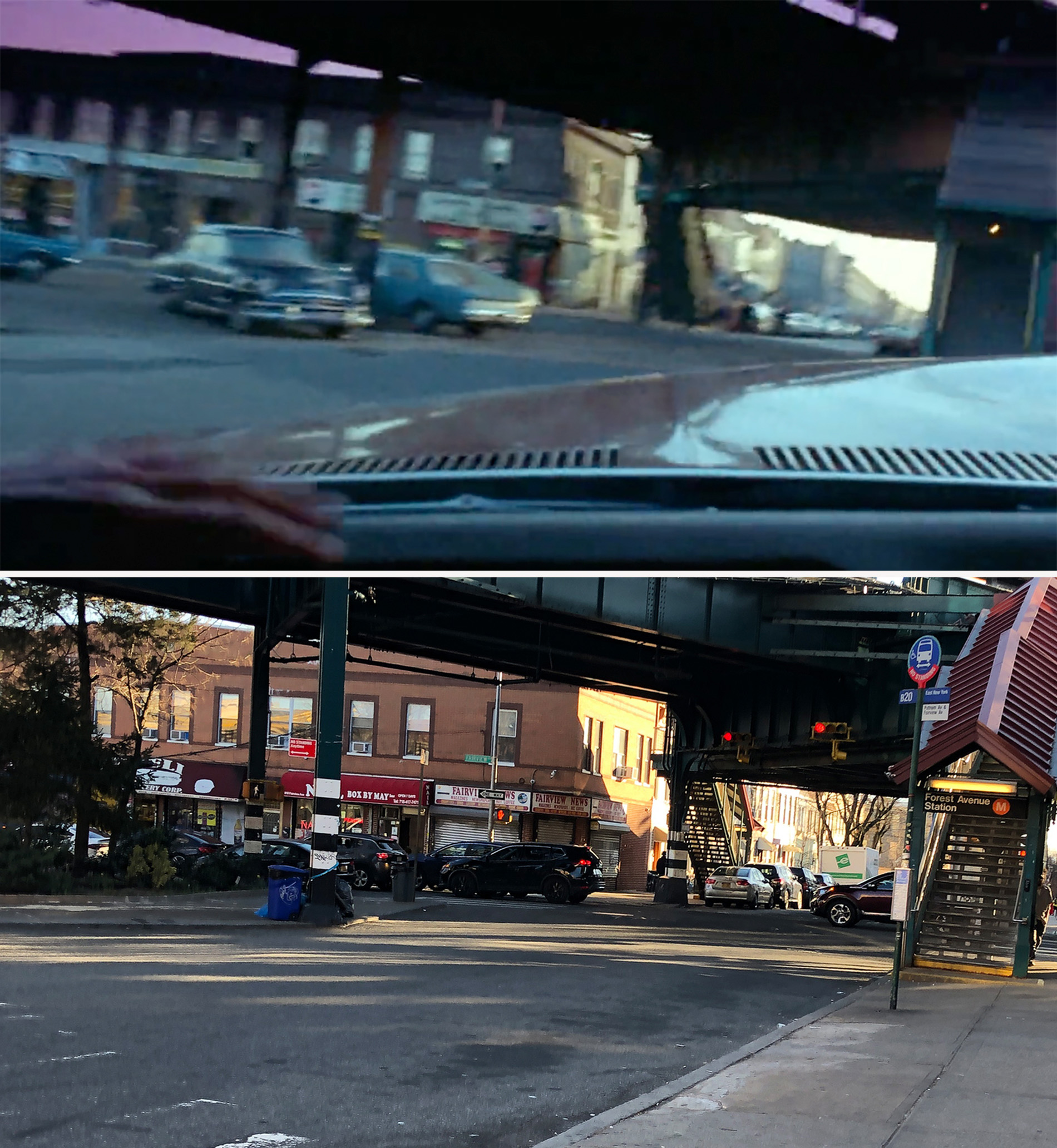 The big clue was the part where Hackman is paralleling the elevated tracks that appear to be cutting through the middle of the blocks — a fairly uncommon occurrence in the MTA system. Having lived in Queen’s Ridgewood neighborhood for two and a half years, I was familiar with a portion of the nearby BMT Myrtle Avenue Line that was laid out that way, cutting though the blocks in its approach to the Forest Av Station.