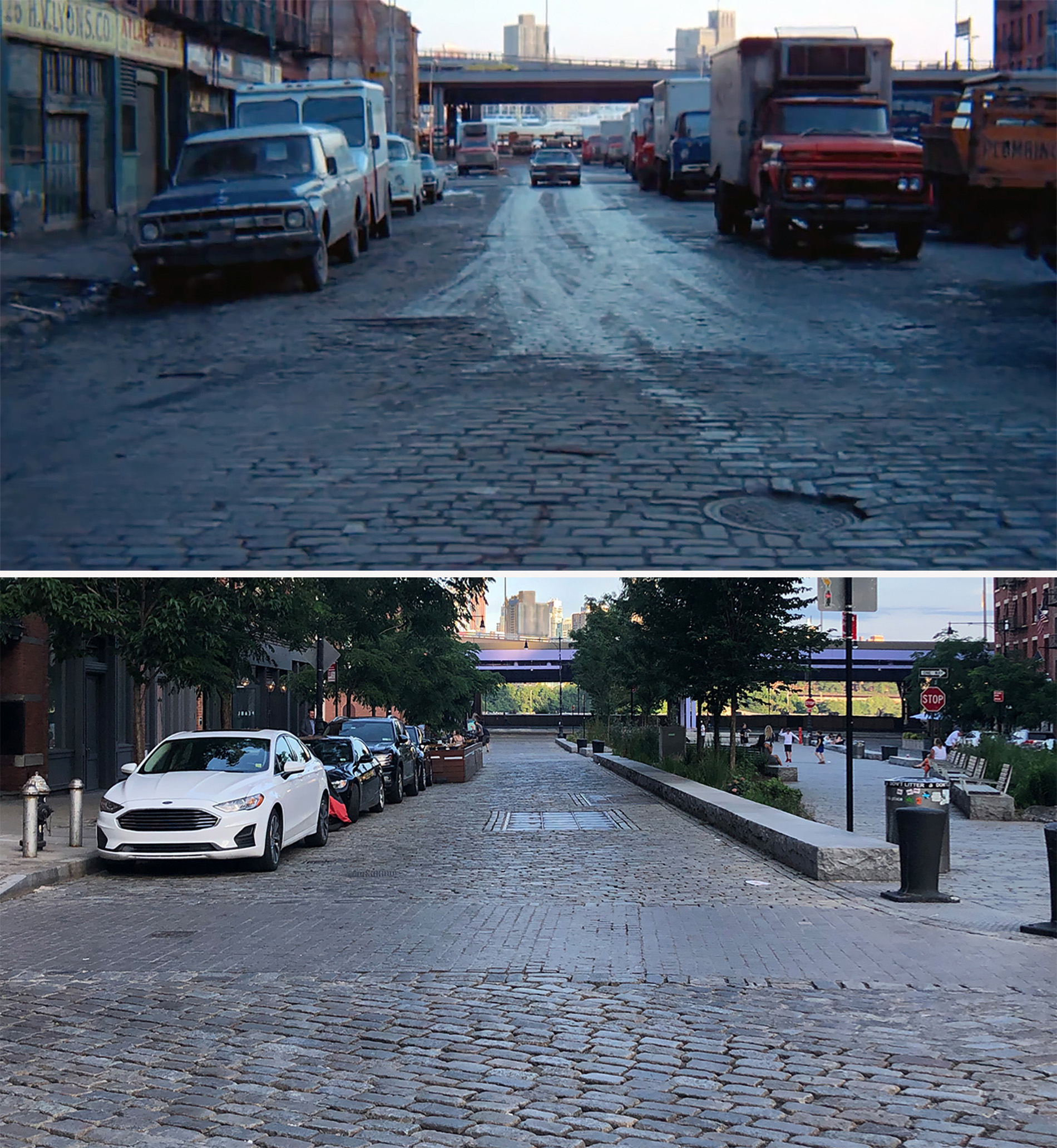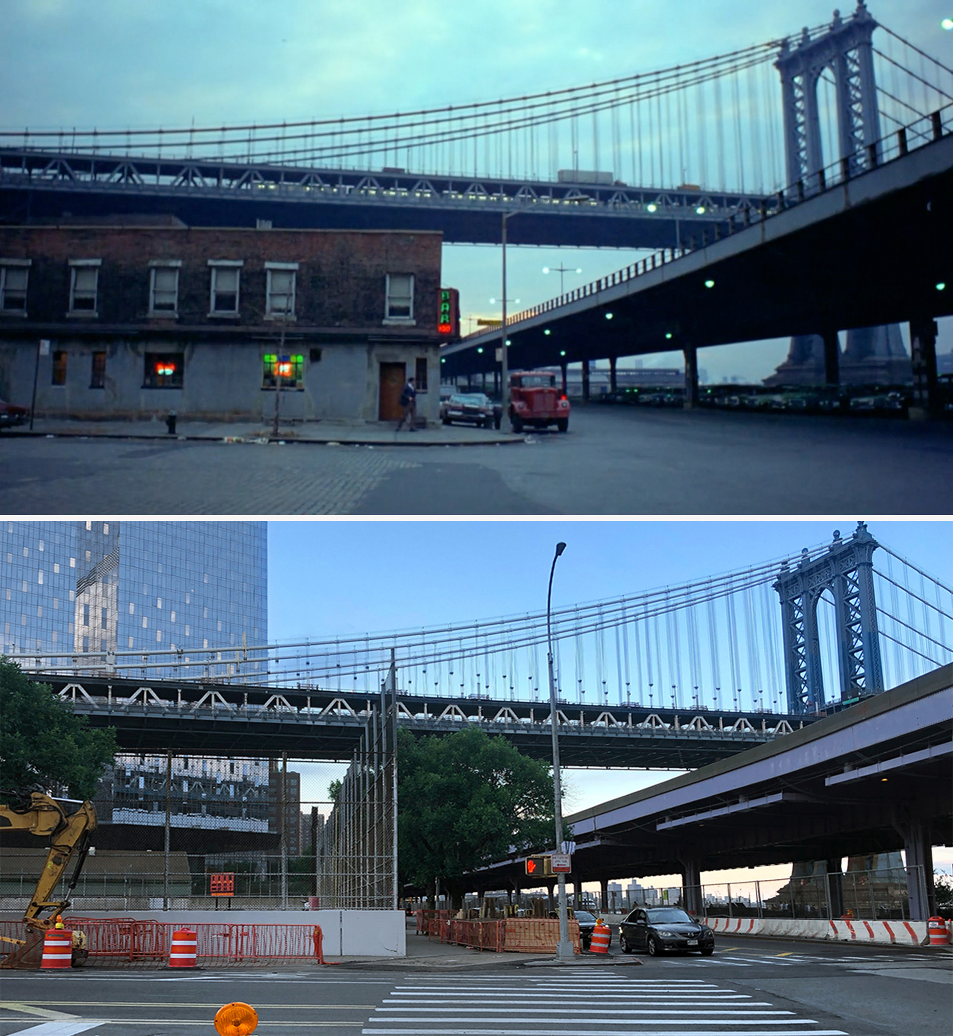 Once again, the locations from this sequence —going from the parking garage to the South Street Seaport— were previously identified by others.