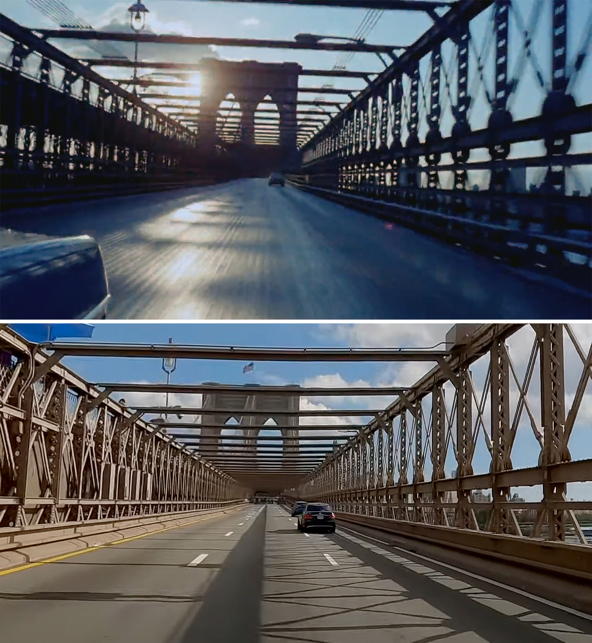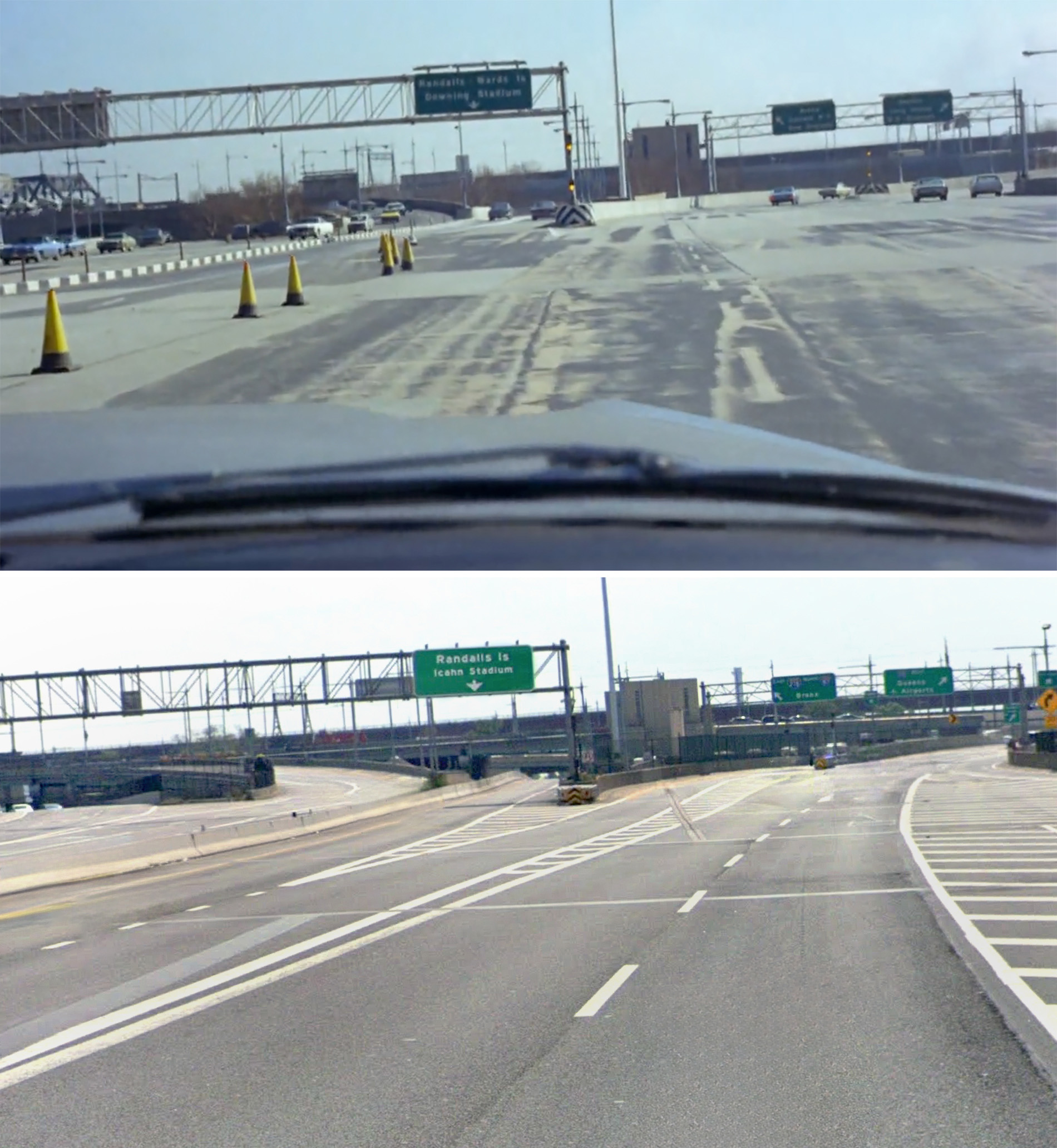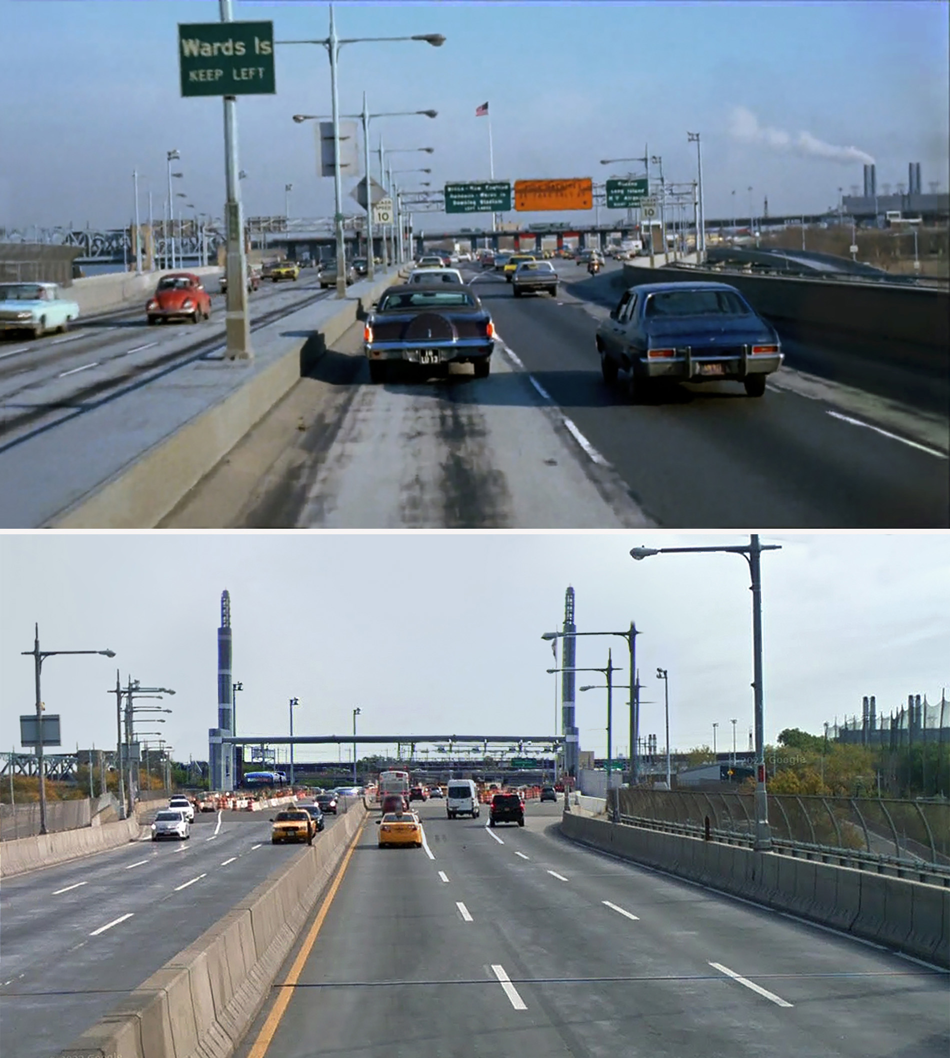 Not much to say about this quick scene on the bridge to Randall’s Island. The one big change was the elimination of the tollbooths in 2017.