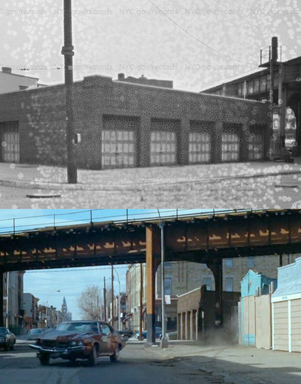 Even before ScoutingNY published these Bushwick filming locations in 2014, I was fully aware they were featured in The French Connection. The reason being, from 2011-2013, I lived just one block away from Wyckoff Avenue. In fact, the deli on the corner of Suydam —where Popeye makes a u-turn— was one of my go-to shops. It was bit more rundown than the other delis (and often smelled like cat pee), but it was a perfectly adequate place for cheap drinks and prepackaged snacks.