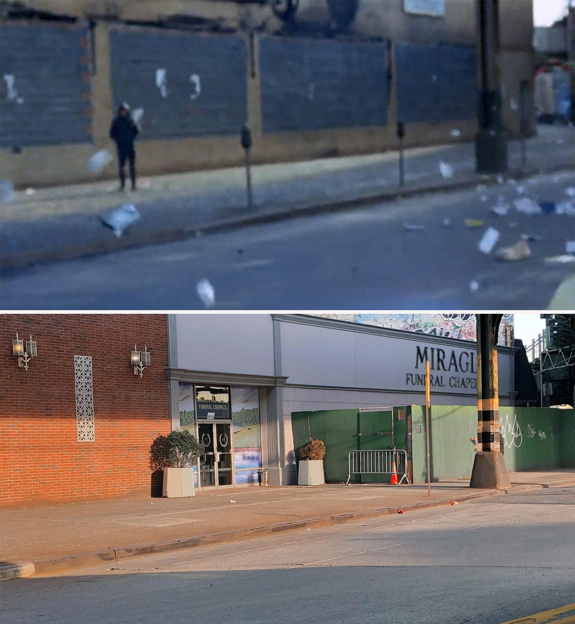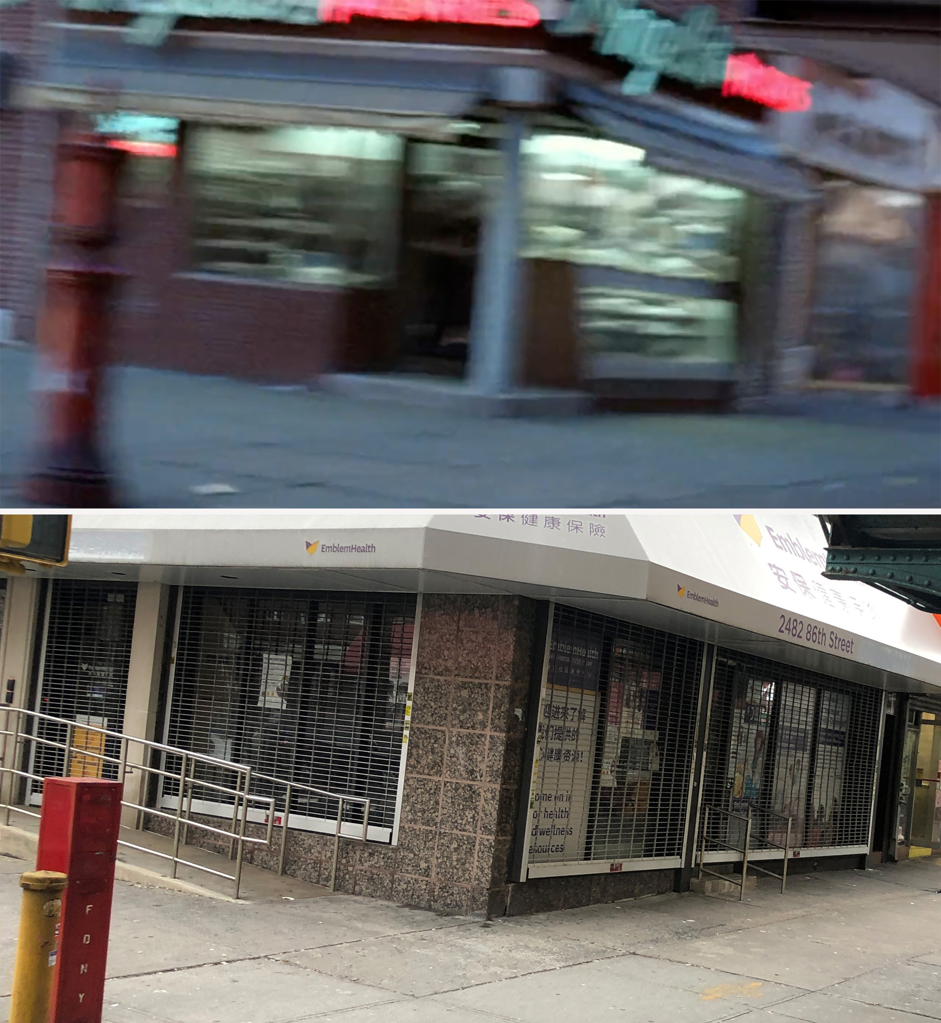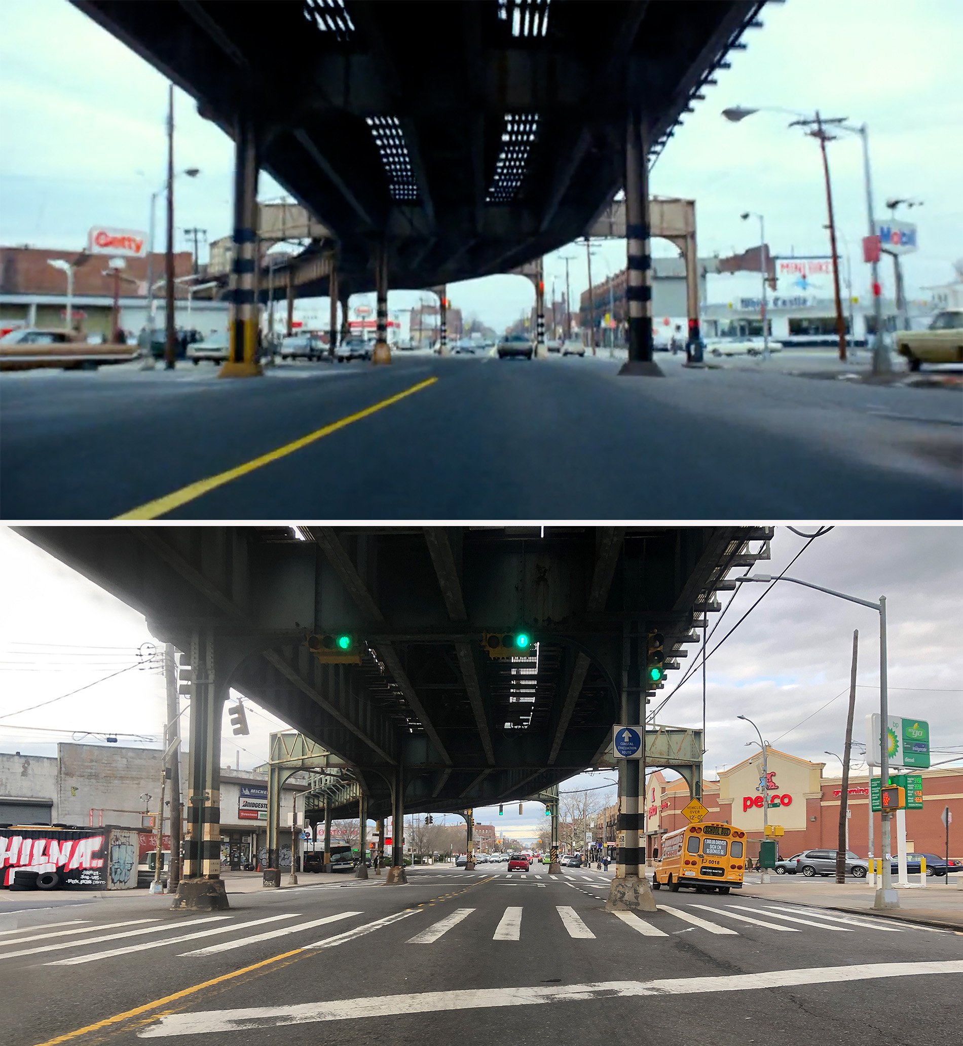 Finding all the specific spots in Brooklyn was fairly straightforward since they were all located in between the starting and ending points. I simply traveled up and down the route in Google Street View, searching for matching structures. It was a little time-consuming, but overall, a fairly painless process, thanks in large part to the fact that this section of Brooklyn hasn’t changed a whole lot over the decades.