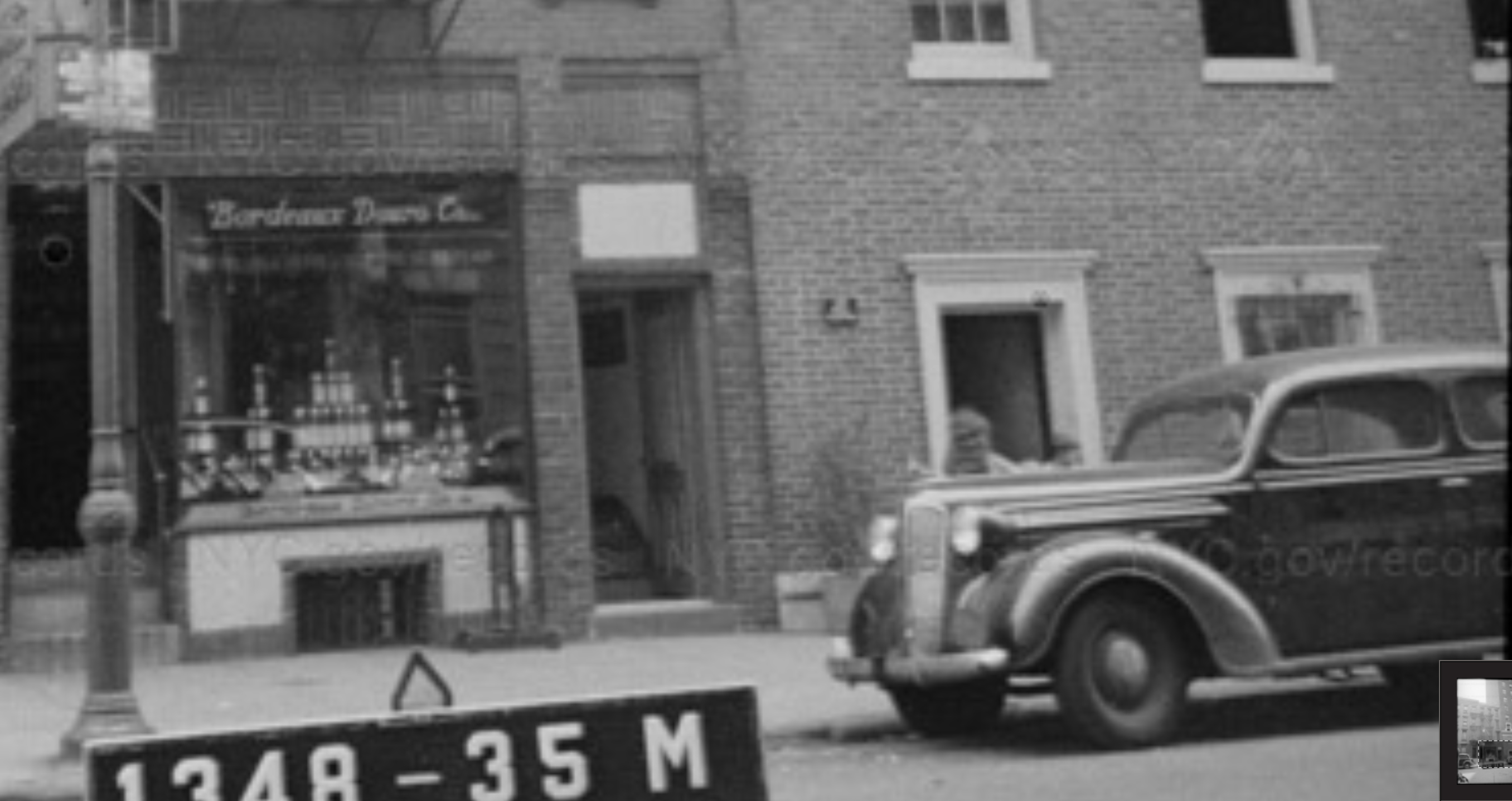 About a year after I got the bowling alley address, the NYC Municipal Archives released all of their 1940s tax photos, allowing me to grab a picture of the location. And once I sew matching stones and a bowling alley sign (even though the name was Schumacher back then), I knew I had accurately found the right place.