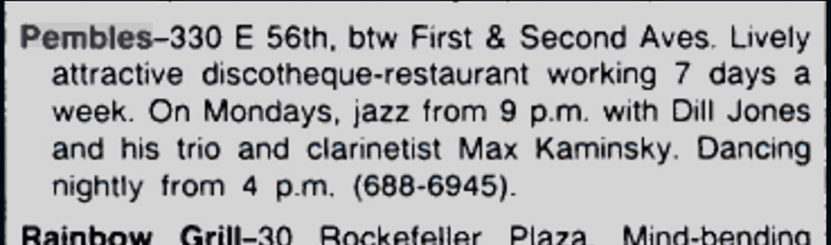It was a slow process, but I eventually came across a 1977 ad for a Pembles discotheque-restaurant that was at 330 E 56th Street.