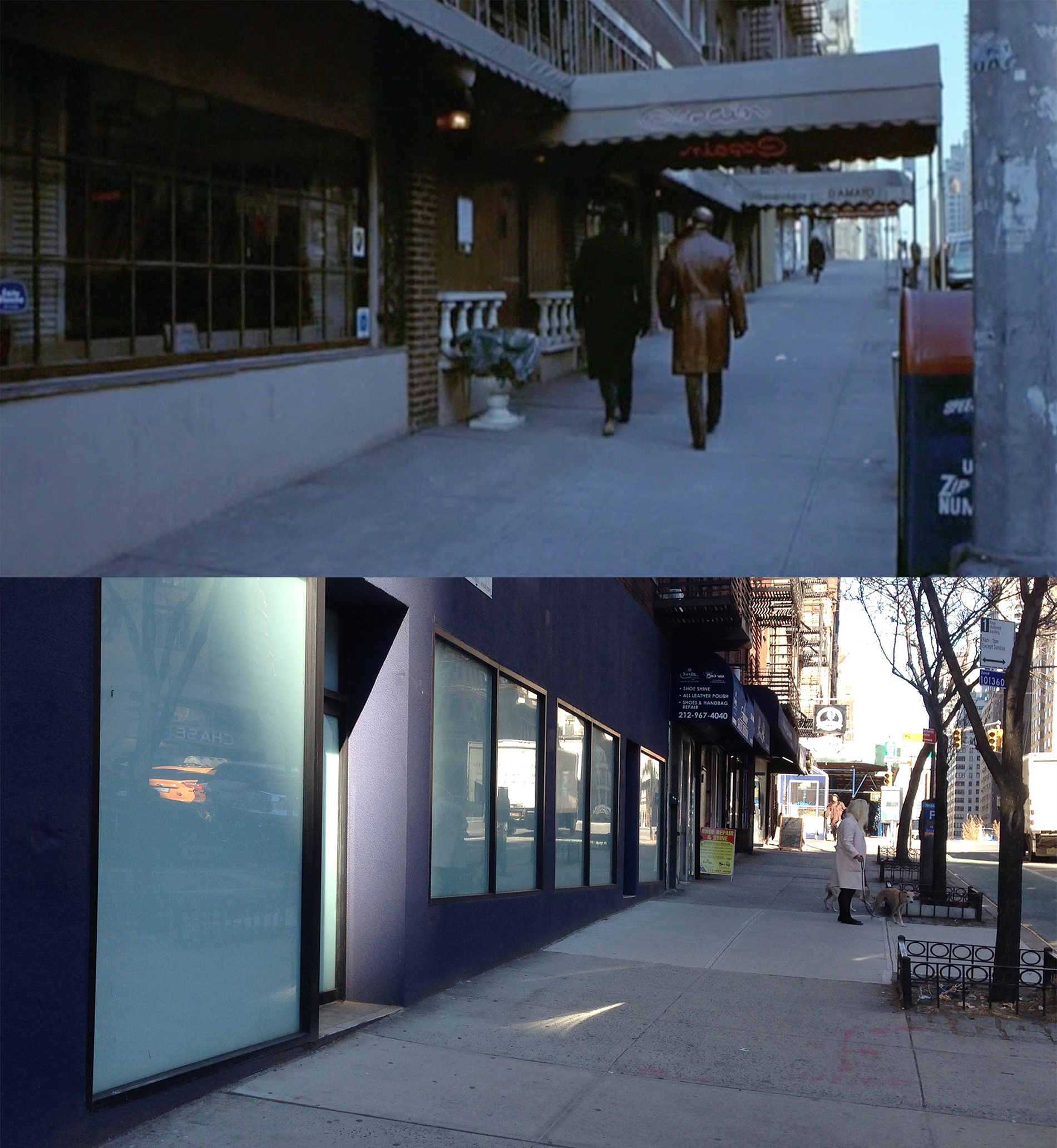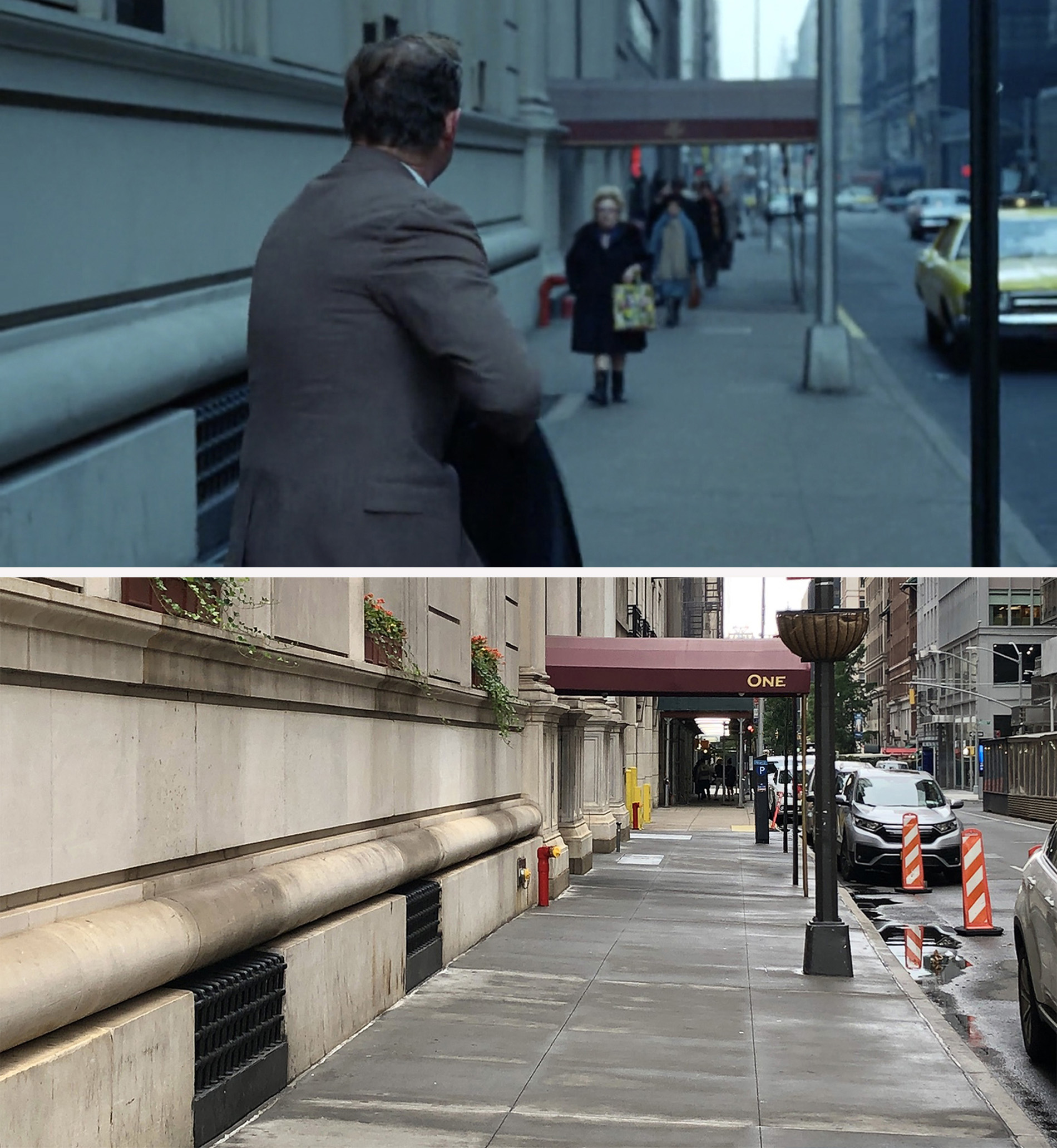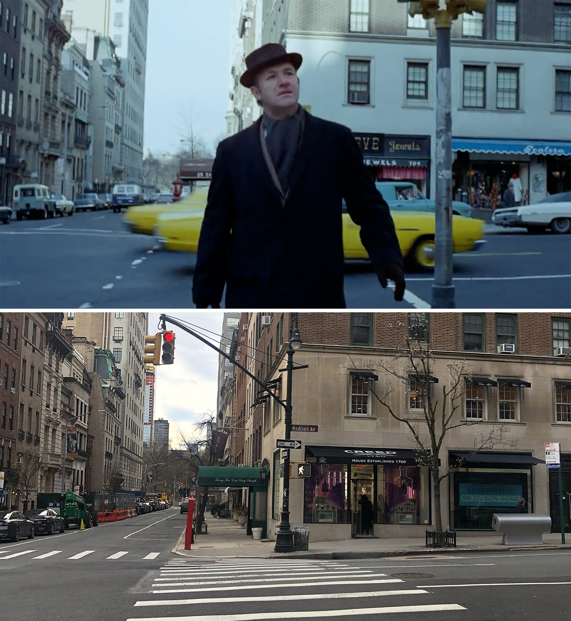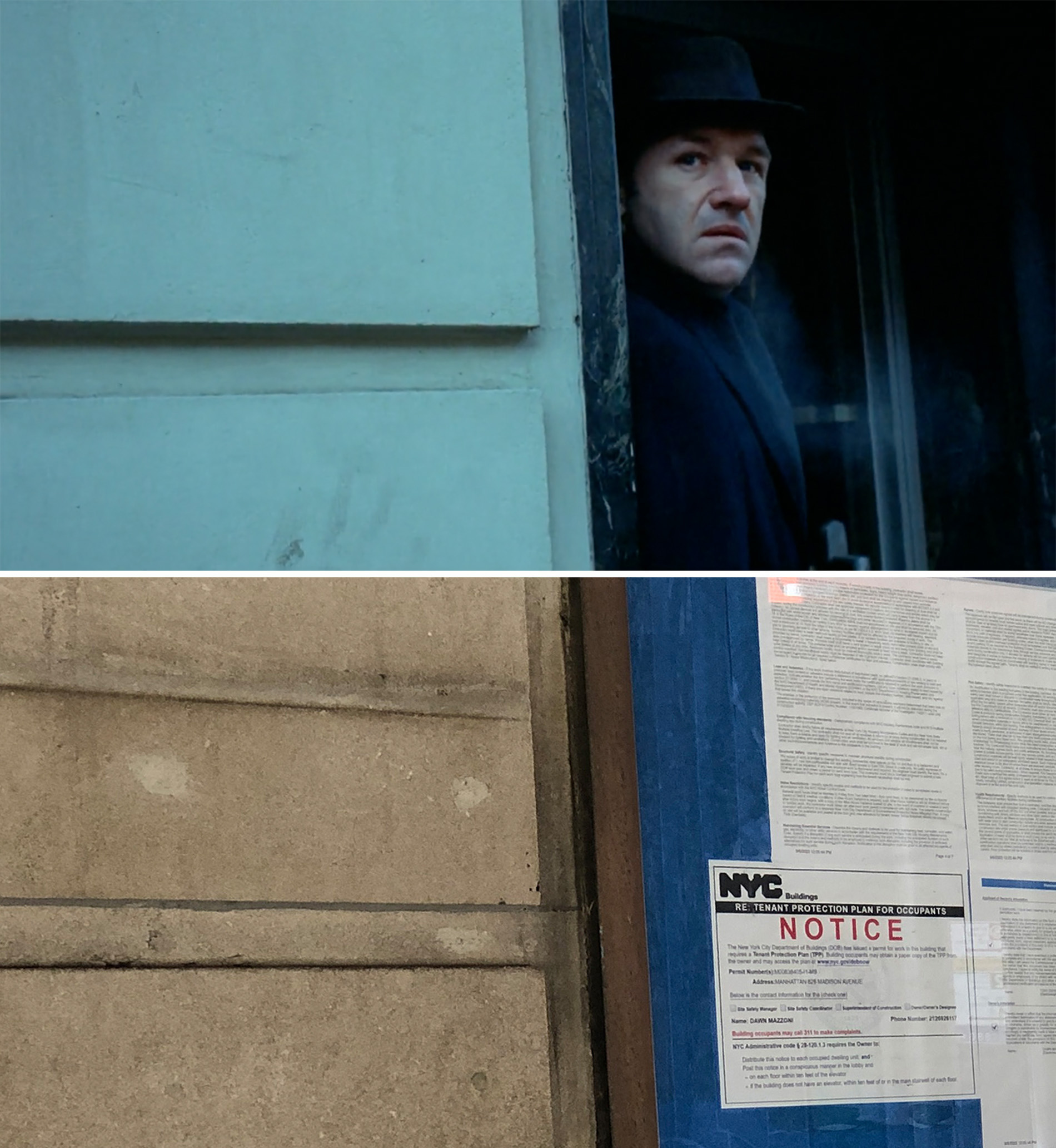 Fortunately, most of the other filming locations along Madison Avenue are still around and unencumbered by scaffolding. A lot of the buildings still have recognizable details from the movie, but one glaring change happened on the corner of 68th where Hackman leans up against the building.