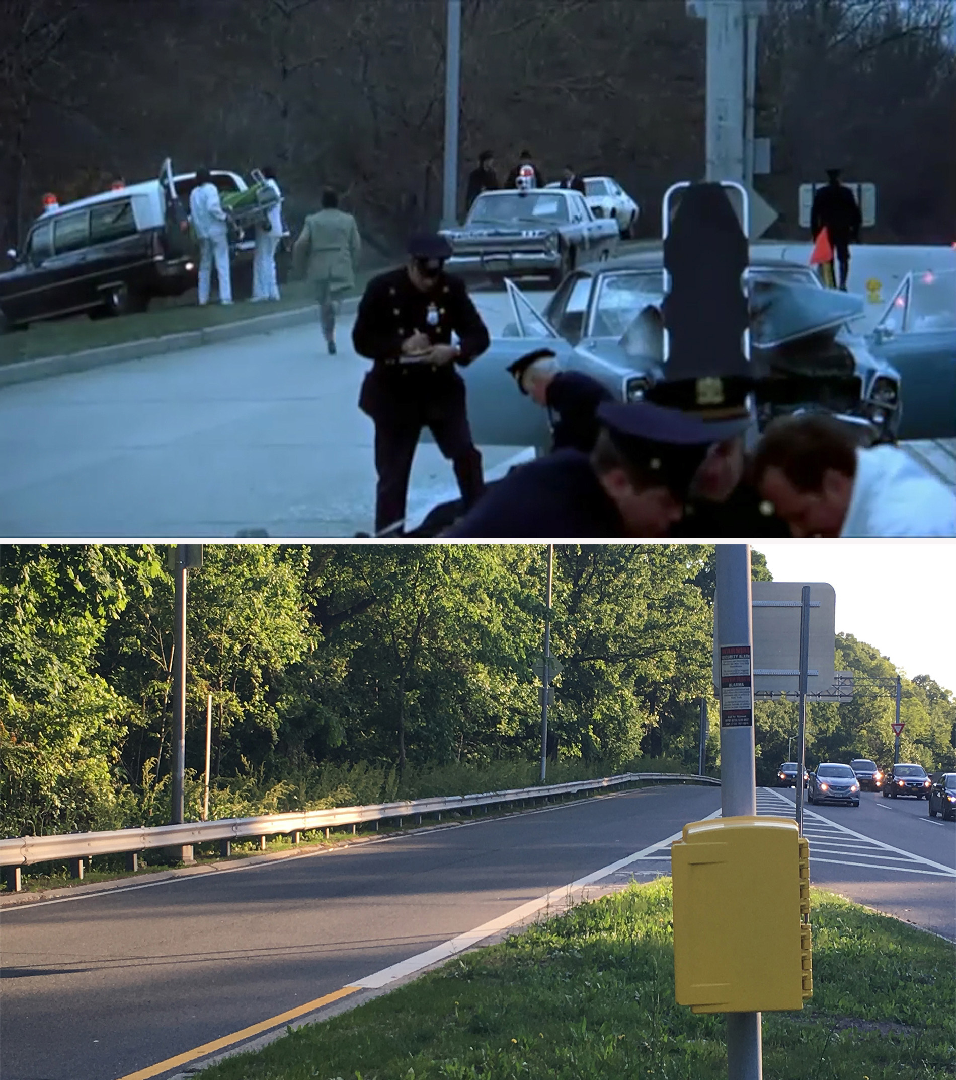 Unfortunately, the one thing the crew and police didn’t count on was that some of the residents who had cars parked inside those blocked-off areas would have to leave during the filming. And as the story goes, one of those residents unknowing entered the active “set” and smashed into the brown Pontiac LeMans, sending the vehicle into a support post for the El tracks.