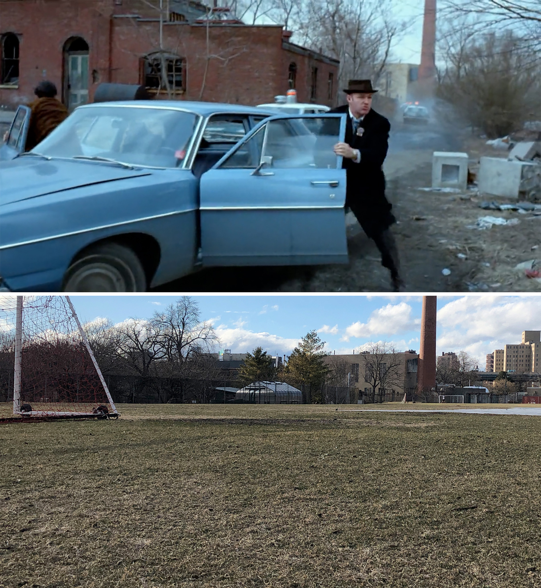 Finding the vacant lot where Popeye gives his famous “picking feet in Poughkeepsie” routine wasn’t as straightforward. Carr couldn’t figure it out, and while the message board on ScoutingNY had a bunch of suggestions, I determined all of them to be incorrect. The one thing that was certain was that it wasn’t filmed in the same area as the rest of the sequence. (The reason this part was filmed in a different neighborhood is because it was actually a reshoot of a scene that was originally staged inside a police car.)