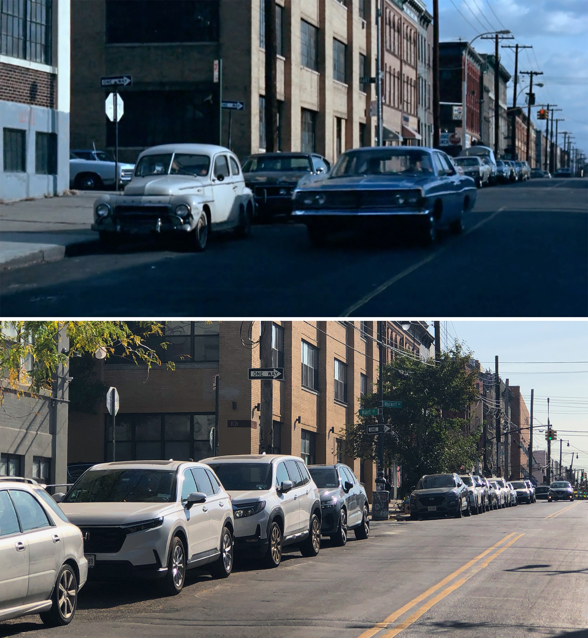 I have to admit, I did have to cheat the modern photos of the Bocas switching cars (last two “then/now” images above), standing a bit closer so I could get unobstructed views. In 1971, the shots were taken from Willow Street, replicating the detectives’ point of view. But what was only a barren field back then is now a lush park with trees that block any views of Columbia Heights from Willow Street.