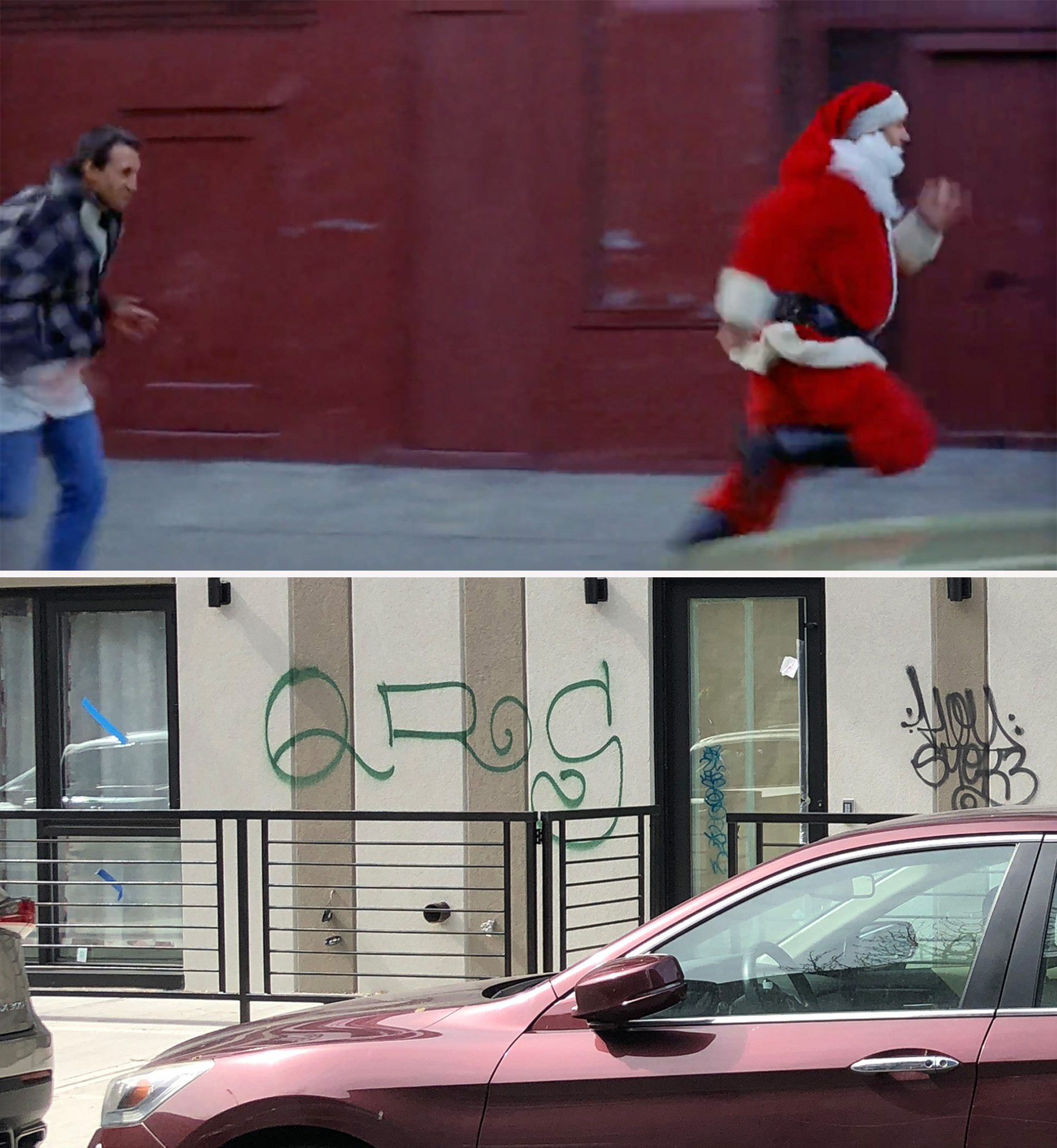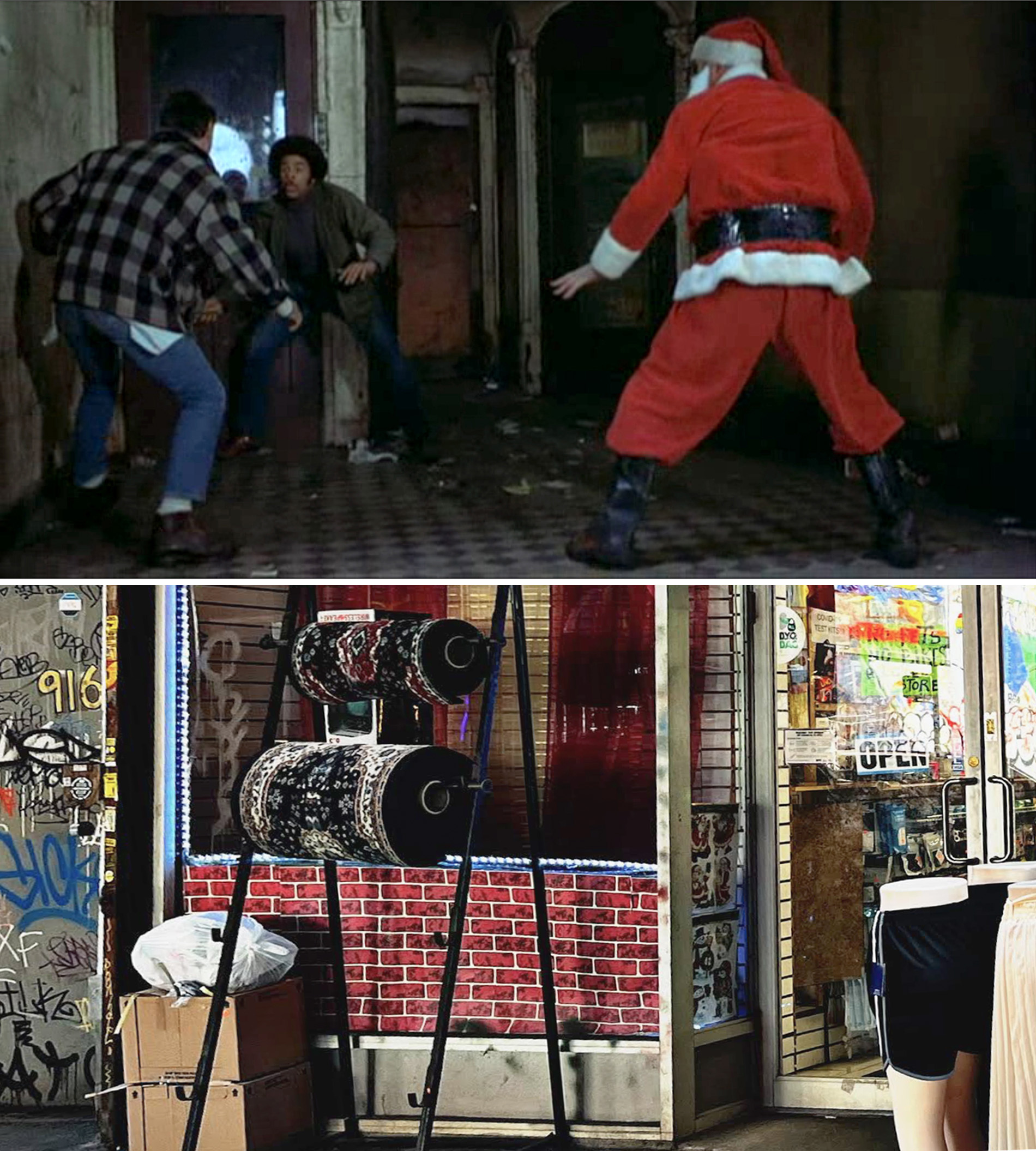 This included this “Santa Drug Bust” sequence, where he identified most of the places used, but didn’t/couldn’t find a few of the street running locations as well as the empty lot at the end of the sequence.